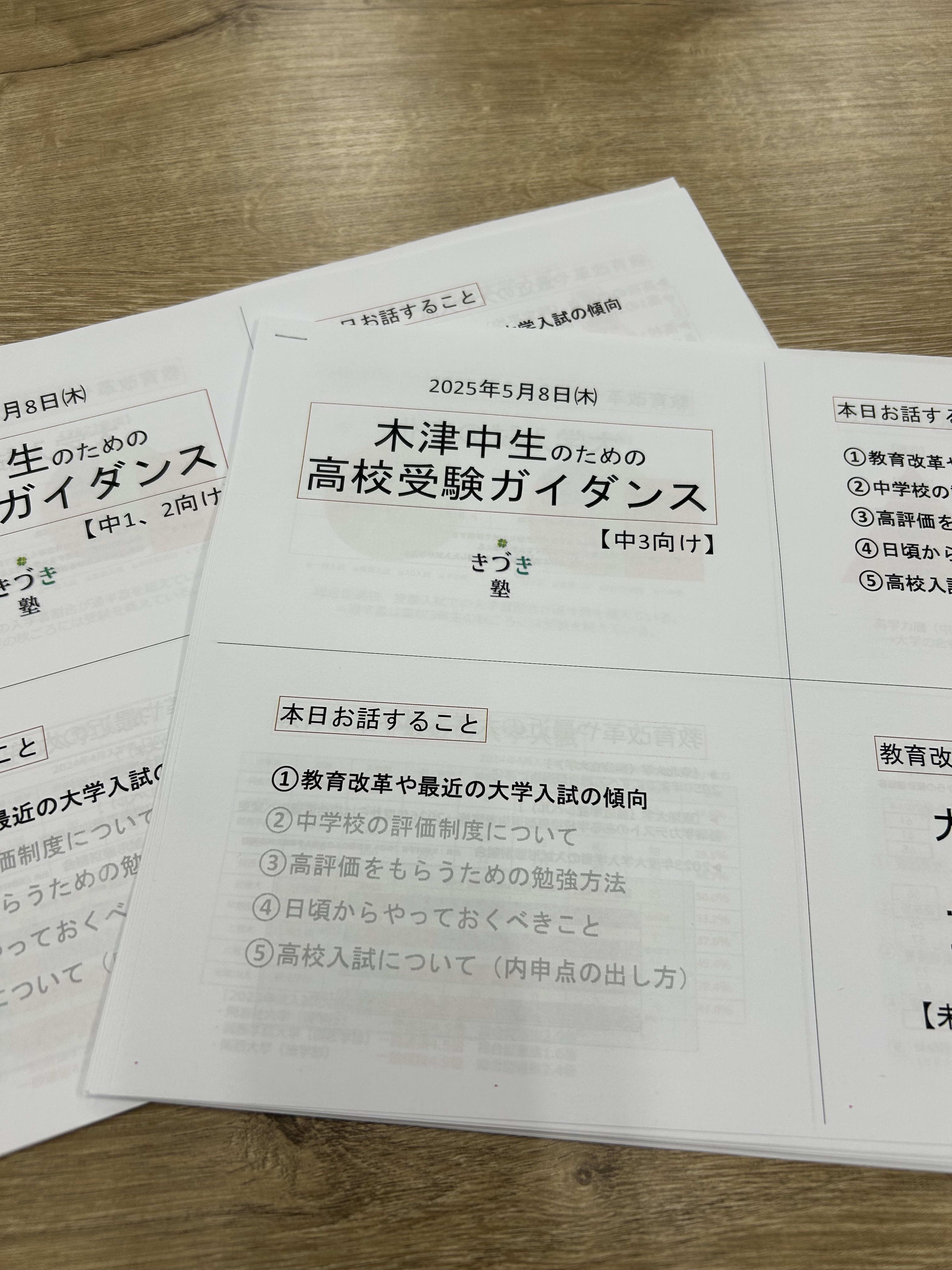 それをもとに、昨年度に続き、今年度も5月8日に「木津中生のための高校受験ガイダンス」を実施いたしました。
