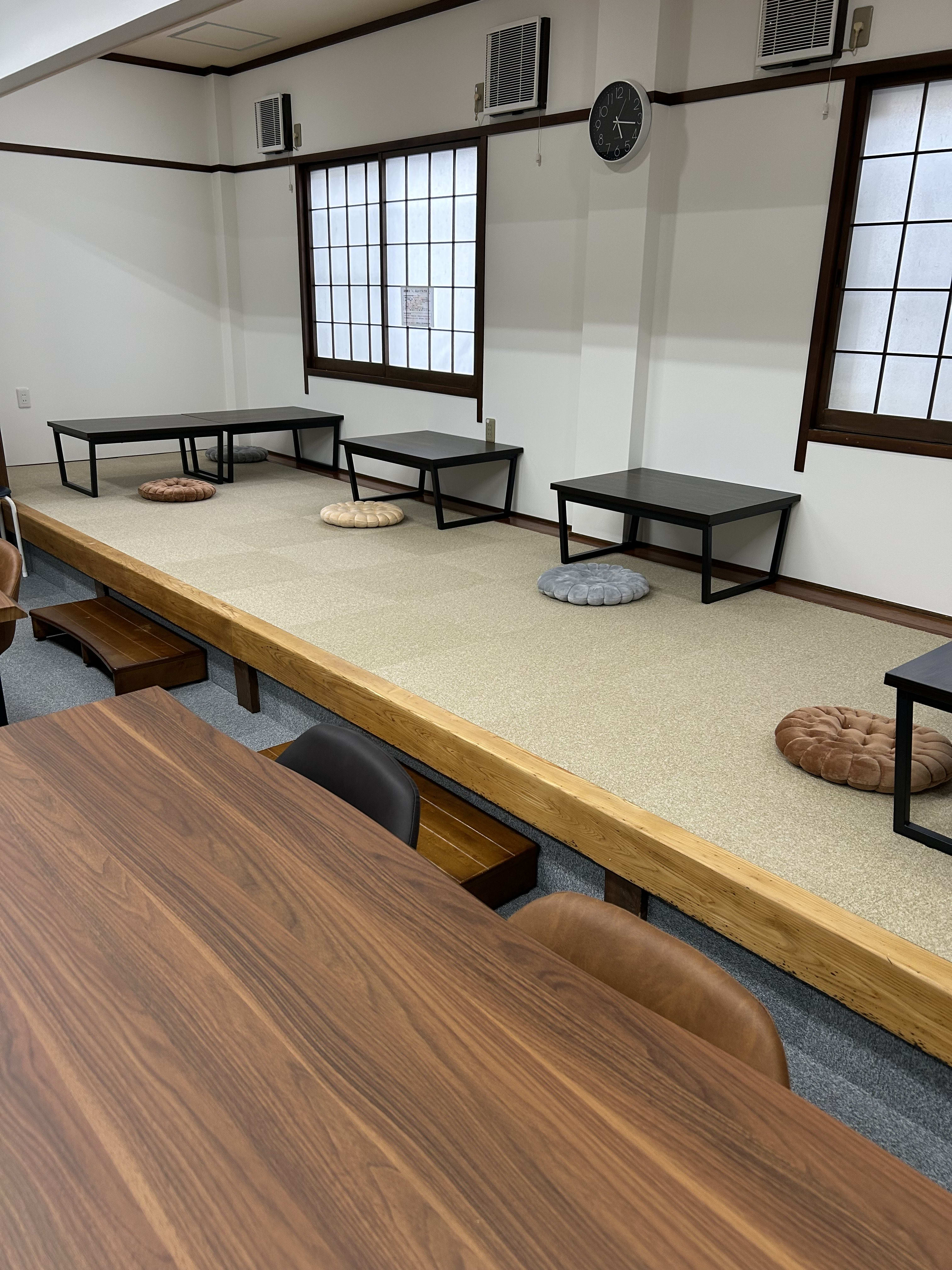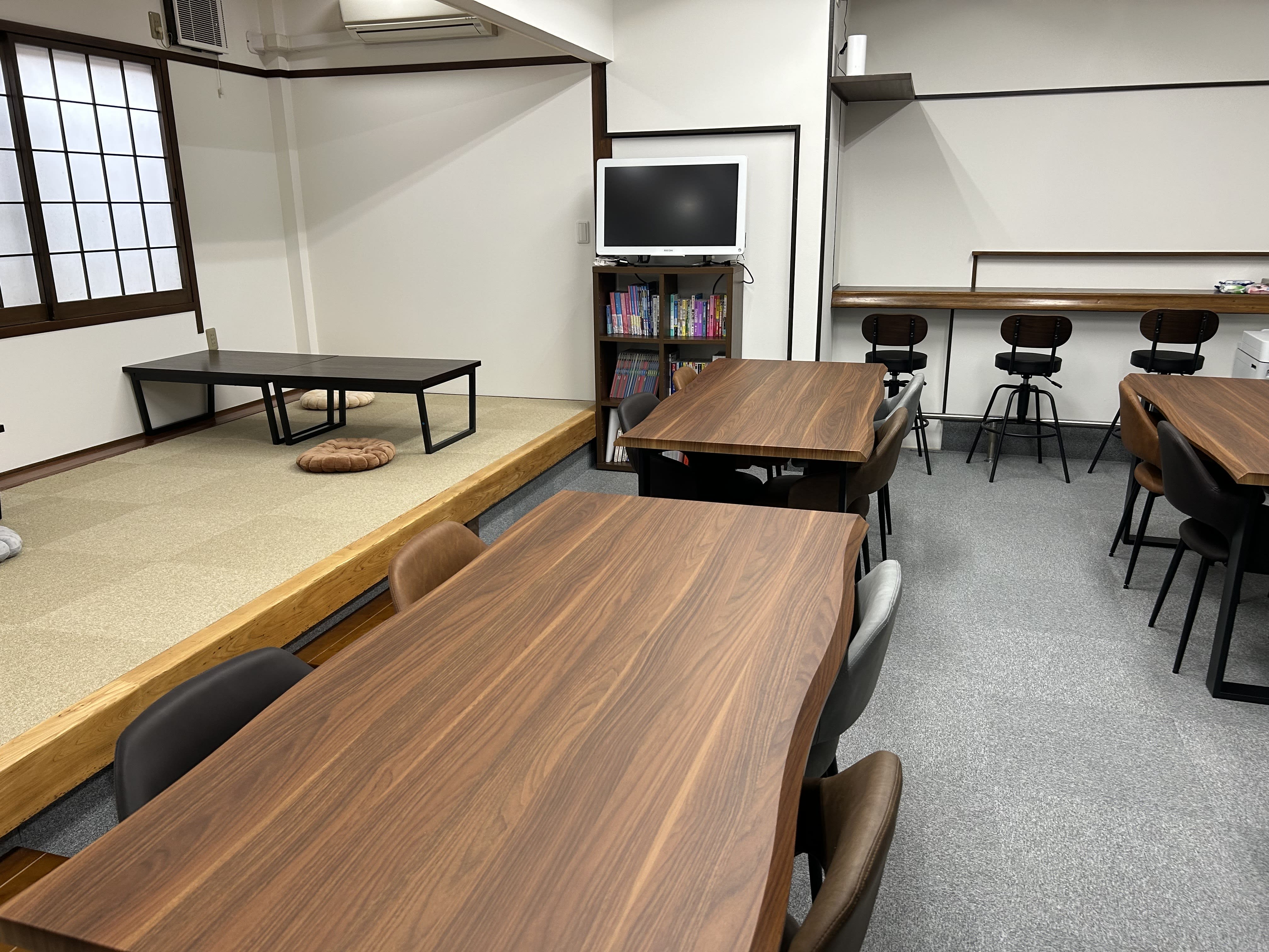 靴を脱ぎ、家・和室で勉強するように、リラックスして学習できるスペースです。